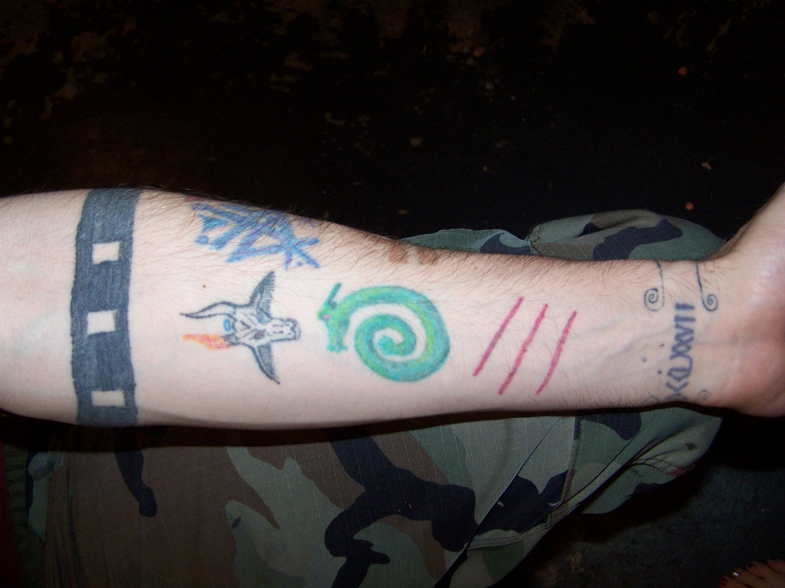 Here's my crazy arm piece that I started...it's kinda' hard practicing on yourself...'bout half done...
