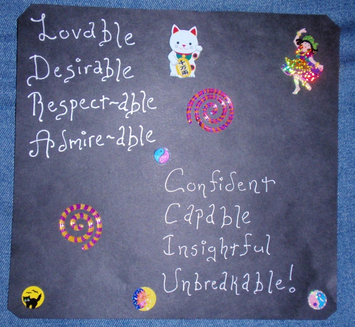 I made this the other day 'cos I seriously need to get myself into a different headspace... it's on my bathroom mirror now. Will it work? Only time will tell... but I like the way it turned out.