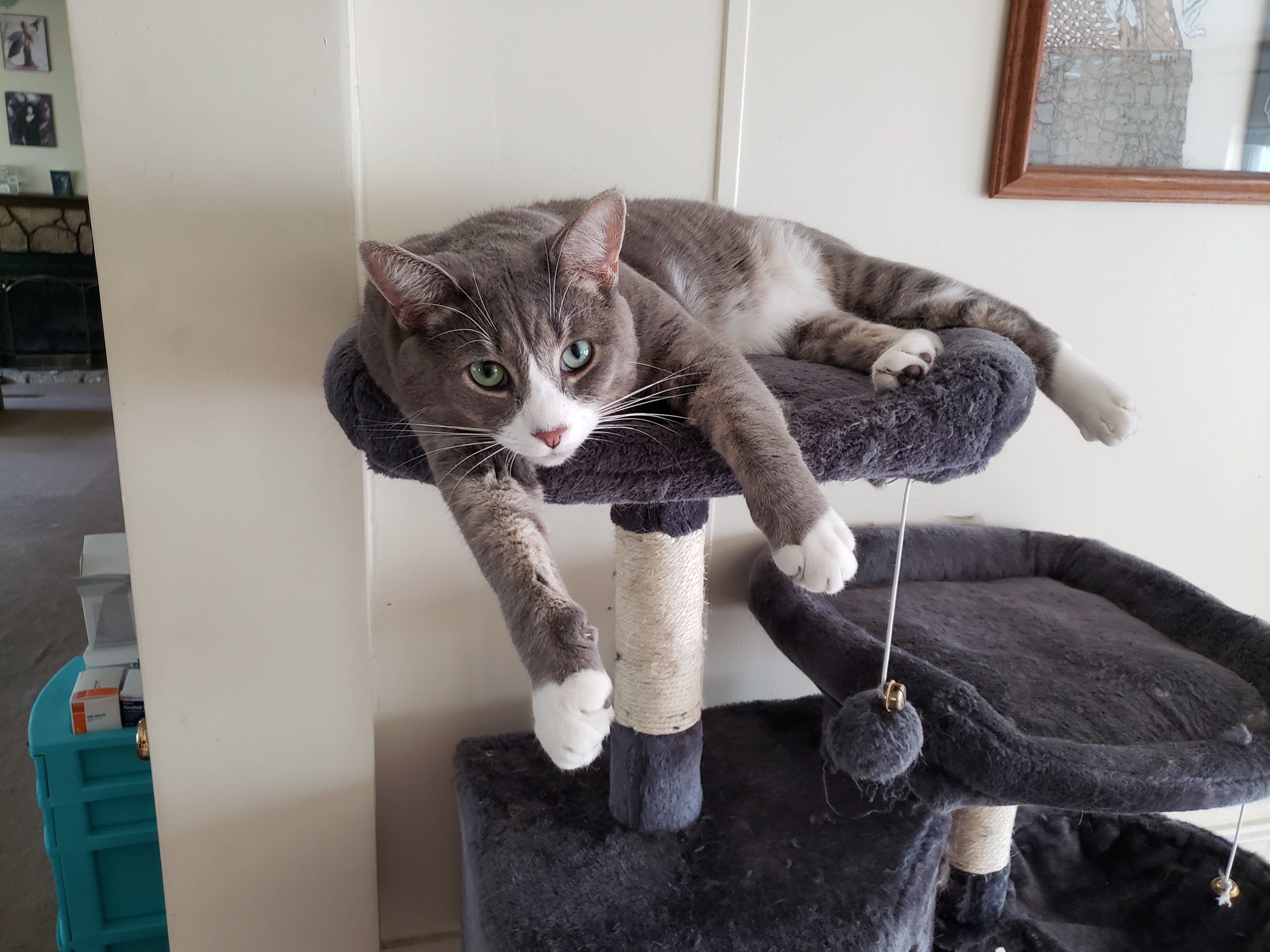 My three kitties I adopted tail end of June. Born sometime in April.